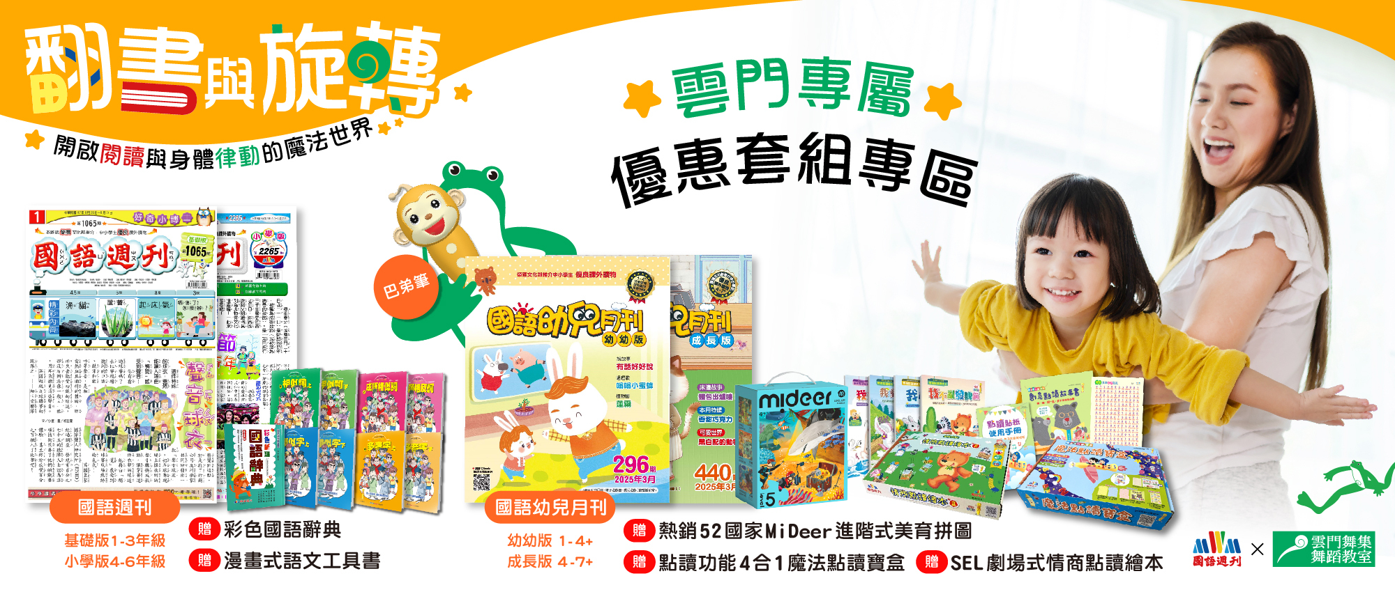 1.即日起自4/30(三) 23:59,訂購國語週刊、國語幼兒月刊即可獲得專屬套組好禮。