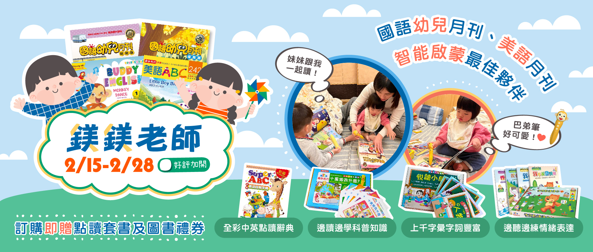 4.訂購鎂鎂老師團購新一代點讀優惠套組,贈送線上圖書禮券,於3/3統一寄至會員E-MAIL,下單時請加入會員,並請於6/30前將優惠券使用完畢。
