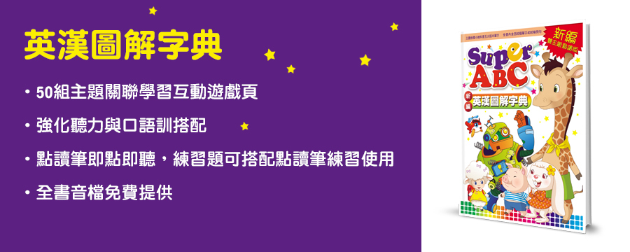 ● 點讀筆即點即聽專業外籍老師純正發音,搭配遊戲練習題增添學習樂趣。