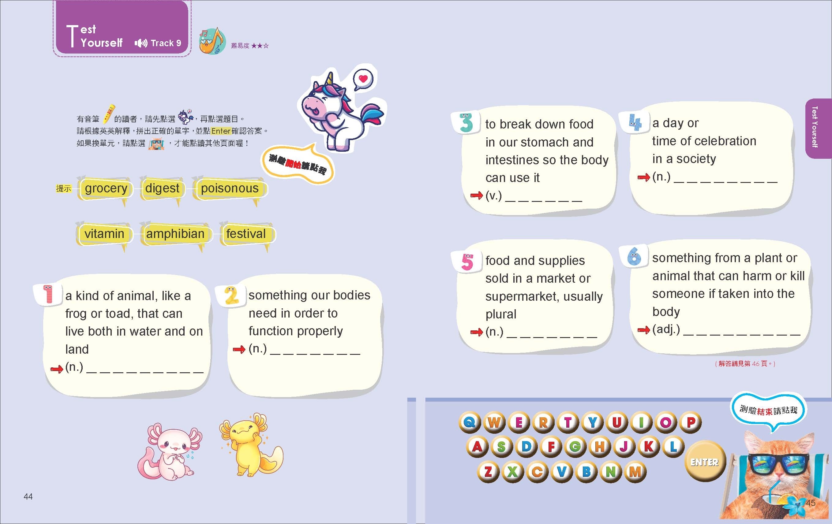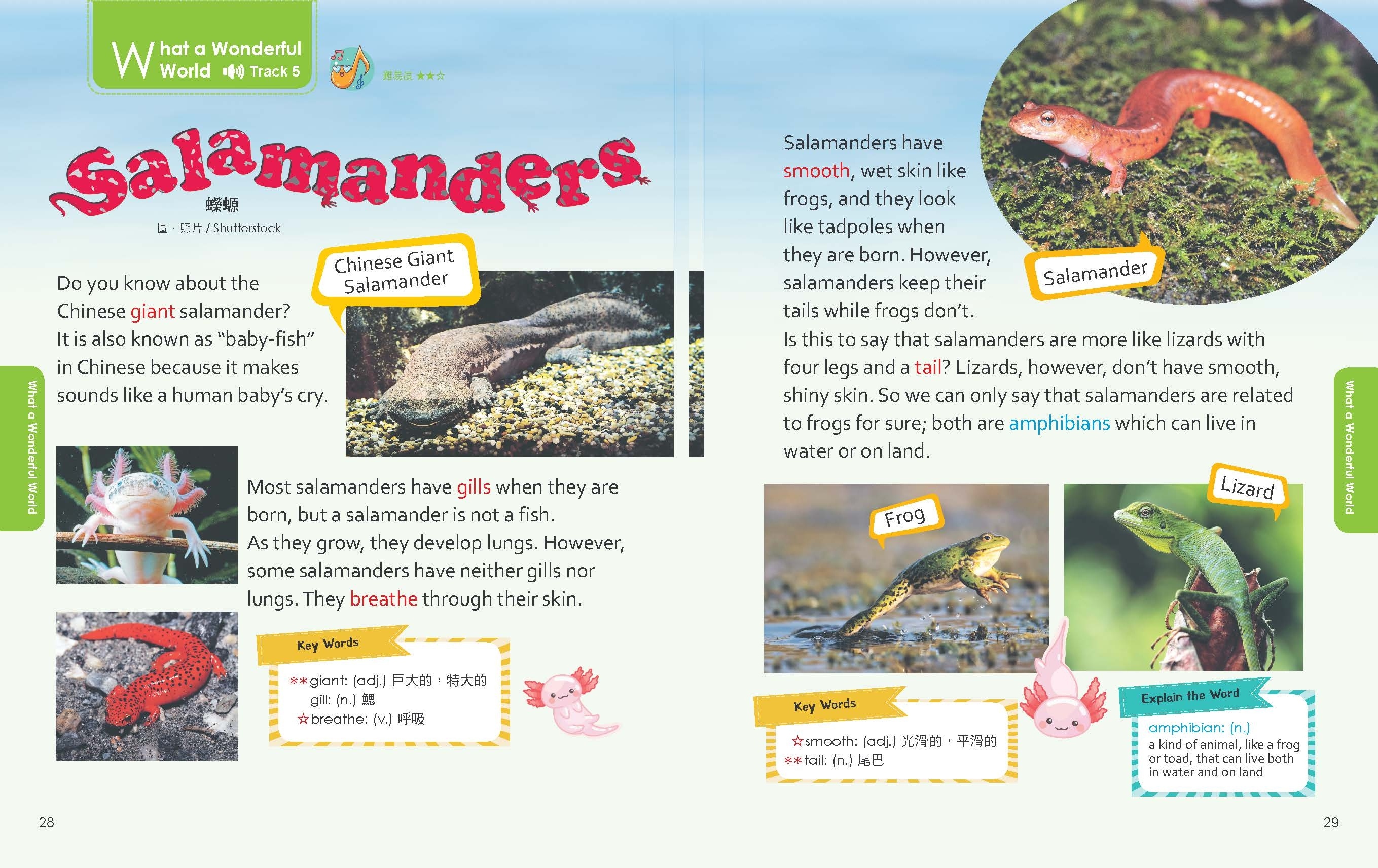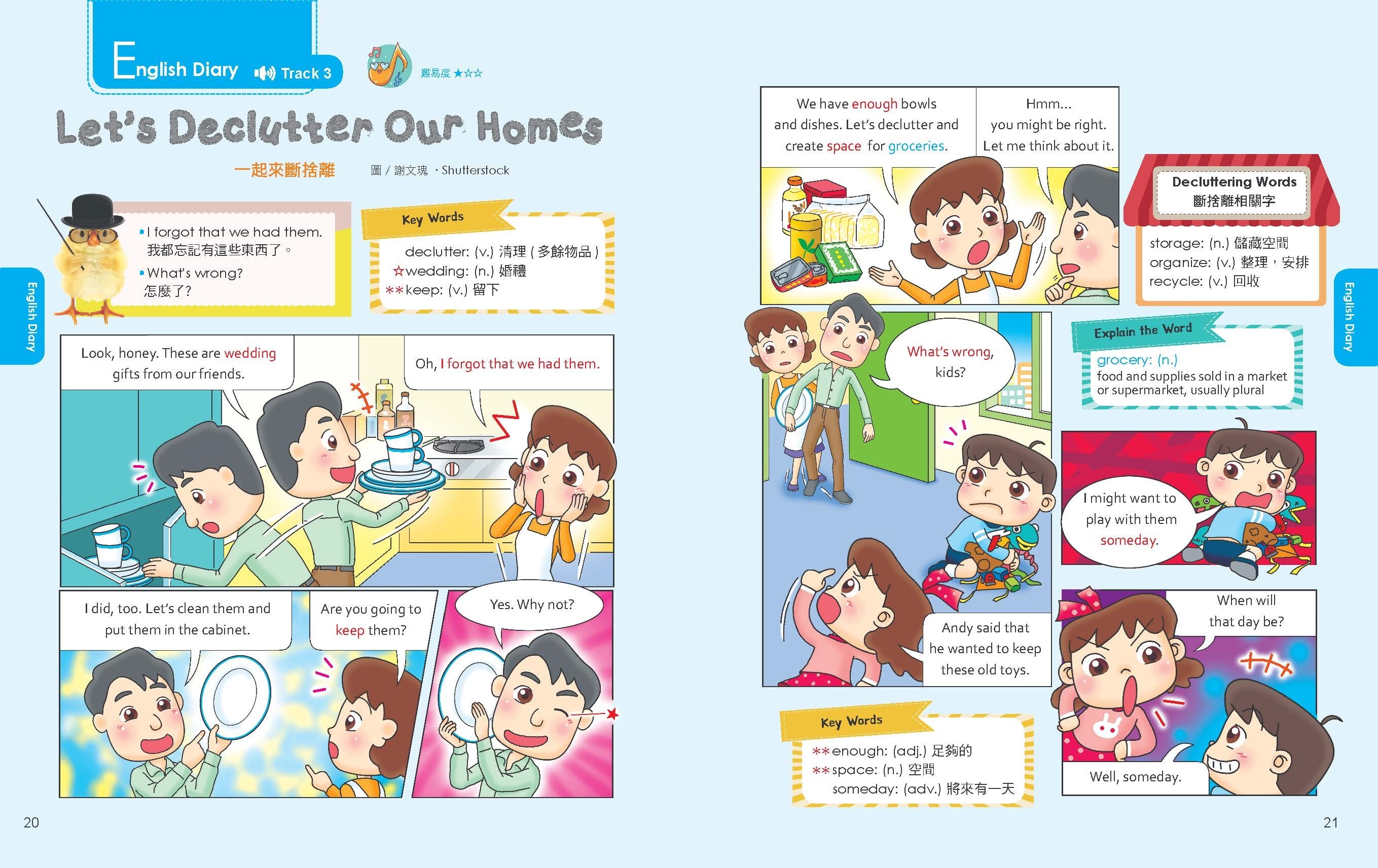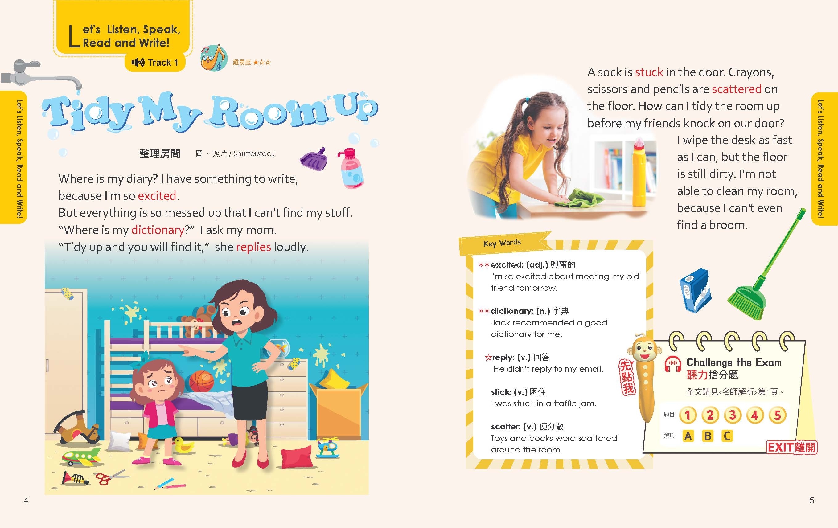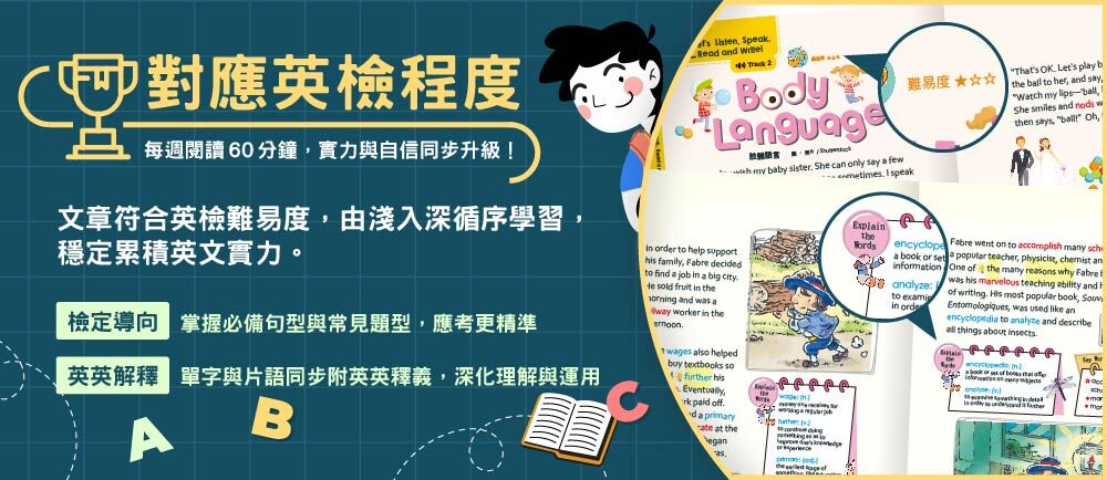 精選生活化主題,內容以日常對話、動植物知識為主。