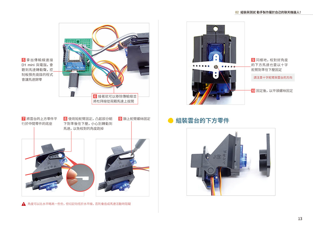 本套件的聊天機器人將以上的概念由虛轉實, 我們將從頭到尾、一步一步帶著您完成自己的聊天機器人, 搭配紙板自己 DIY 機器人造型外盒, 機器人頭部還可自由控制轉動角度, 結合現在人手一隻的智慧型手機, 就可以用語音或是文字聊天, 在聊天過程中機器人還會動起來, 時而搖頭、點頭、發抖、打瞌睡等, 實在很可愛!機器人還會透過 AI 人工智慧中的『強化學習』概念, 學習它與你之間問答的關連性, 運用在接續聊天的回話中, 聊的越多、學得越多, 工作之餘隨時跟它聊兩句, 逗趣的回答超舒壓。