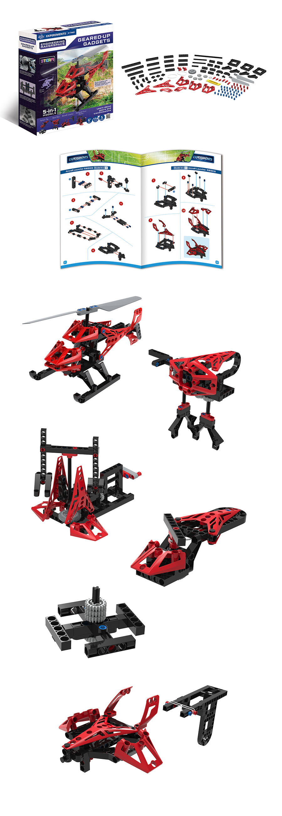 ● 模型主題設計為搭配齒輪傳動之5種不同造型、動作的交通工具模型