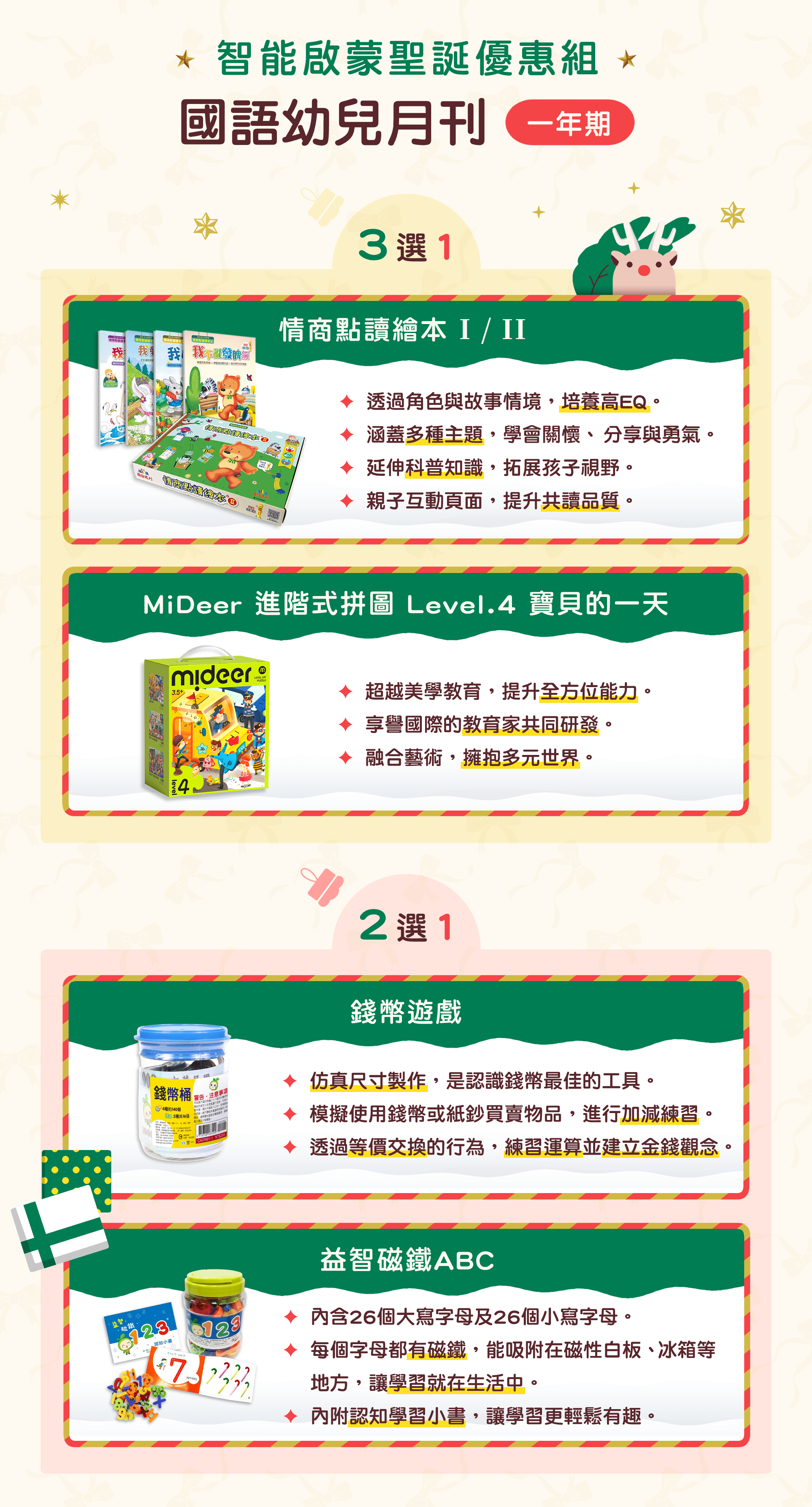 ※聖誕燈飾為限量禮,送完改贈諺語動物園一冊或十萬個為什麼一套。
