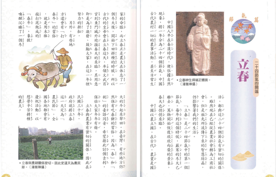 全套共2冊介紹民俗節慶和紀念日典故和意義由來,了解台灣歷史和文化本書藉由深入淺出的方式,詳細介紹了各個節氣的氣候狀況。