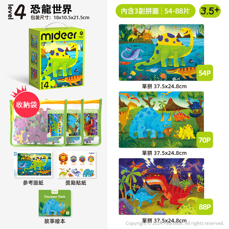 【MiDeer】進階式拼圖 Level4 恐龍世界